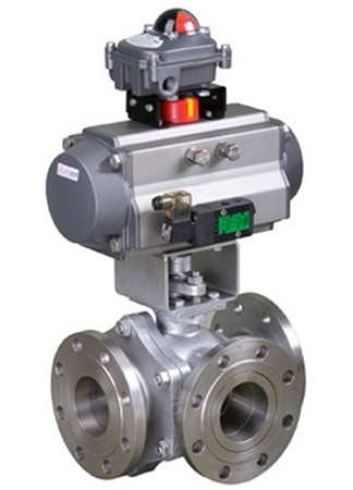 | Q645F不銹鋼氣動三通球閥 | | 型號:Q644F、Q645F 口徑: DN15~150mm 壓力: 1.6~6.4Mpa 材質:鑄鋼、不銹鋼、合金鋼等 |